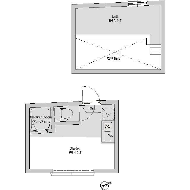 | 間取り | ワンルーム(洋4.3 K0 ロフト2.9) | 主要採光面 | 南東 |